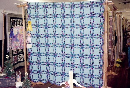 Island Wedding won a Third Place ribbon and Best Hand Quilting at the 2000 Mooresville Centerpiece Quilters Show.   Here I am with Island Wedding at the show.