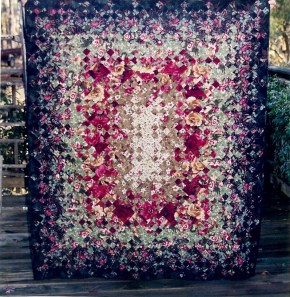 This pattern is from a book called “Tradition With A Twist” by Blanche Young and Darlene Young Stone.  All the patterns in this book are great but I particularly liked the Blooming Ninepatch.  It’s not difficult to make from a