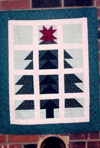 I found the pattern for this Christmas wall hanging in a book called “Small Quilts – The Vanessa-Ann Collection” from Oxmoor House.  It was easy to piece and I liked the simple effect.