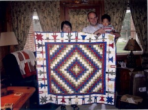 Here is a picture of my great nephew and his parents with his new quilt.