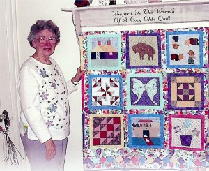 Here’s a picture of Mom with her quilt which was a gift for Christmas 2000.