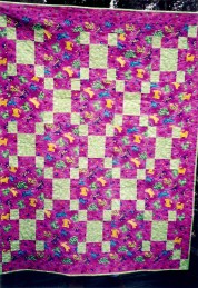 Sometimes it’s nice to make a quilt that’s easy to make and great to snuggle under.  I like to call these snuggle quilts.  As always, when Christmas approaches, I start thinking about my list of gifts and usually start thinking about what can I make.  Christmas 2000, I decided to make snuggle quilts for a great nephew and 2 great nieces.